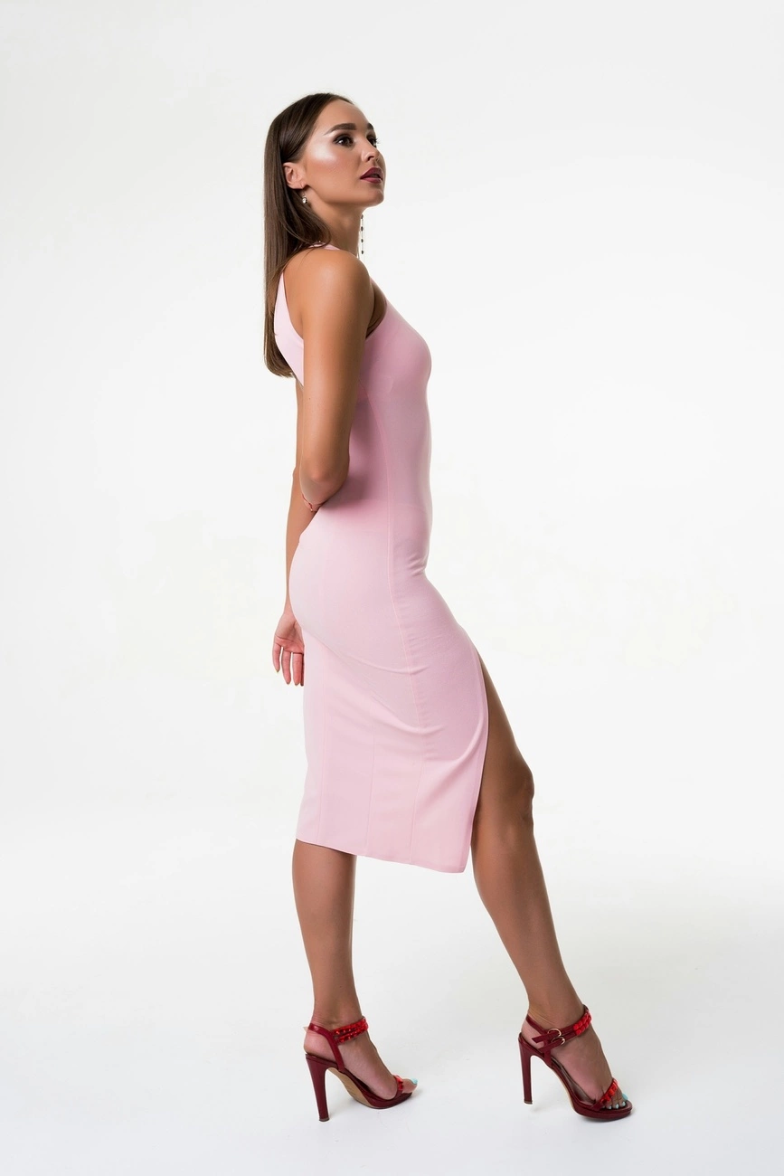 Платье силуэтное по фигуре с разрезом.